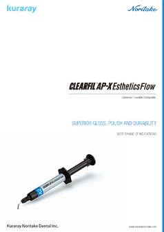 CLEARFIL™ AP-X Esthetics Flow là loại composite lỏng mới, quang trùng hợp, phù hợp với nhiều mục đích sử dụng. Với độ bền và tính thẩm mỹ vượt trội, CLEARFIL™ AP-X Esthetics Flow có thể được sử dụng cho tất cả các loại khoang răng bao gồm cả phục hình bề mặt nhai. CLEARFIL™ AP-X Esthetics Flow chứa hạt độn siêu nhỏ đặc biệt được xử lý bằng chất dính hạt độn với khung nhựa silane độc quyền, mang lại cho sản phẩm những đặc tính cơ học tuyệt vời và khả năng giữ độ bóng cao. Các màu này tương ứng với bảng so màu răng CLEARFIL MAJESTY™ ES Flow.